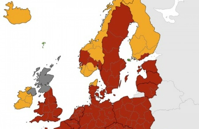 The majority of Europe is listed as ‘red’. However, as well as Ireland, the Canary Islands, Iceland, much of Norway, a region in Denmark and the majority of Finland are orange.