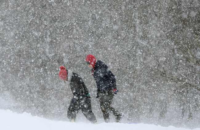 Walkers in Athy, Kildare during the Beast from the East in March Niall Carson