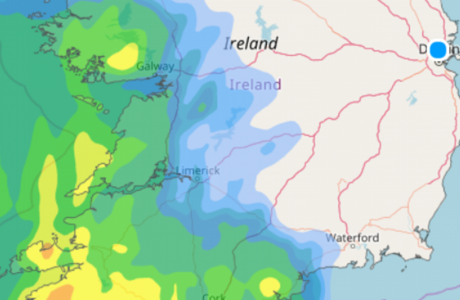 However, Met Éireann says the rain will clear northeastwards through the afternoon, and that brief drier intervals will develop in between lingering patches of drizzle before more rain pushes into the southwest in the evening.
