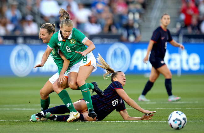 A left-foot strike by Coffey beyond the dive of goalkeeper Courtney Brosnan, Ireland captain on the night. doubled the US advantage as the teams reached the interval.
