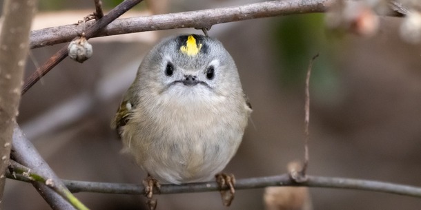 And last but not least, Ireland's smallest bird, the goldcrest. Its call is tiny, high-pitched, and difficult to hear, but from a winter hedgerow you might hear...