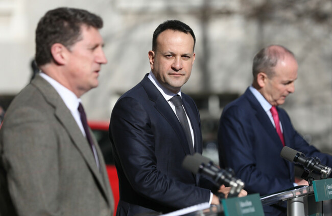 Coalition leaders Eamon Ryan, Leo Varadkar and Micheál Martin. Sasko Lazarov