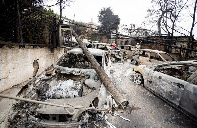 Burnt cars in the town of Mati Christoph Soeder/DPA/PA Images