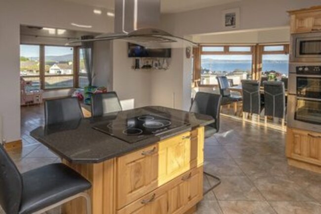 Across the country in Co Kerry,  a search for homes with seaside views will deliver a five bedroom, three bathroom detached home looking out to Valentia Island, Knightstown, and Church Island.