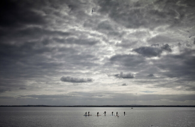 Stand-up Paddle Boarders on Strangford Lough, Near Grey Abbey, County Down. Alamy Stock Photo