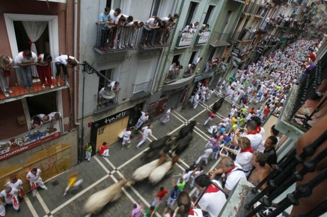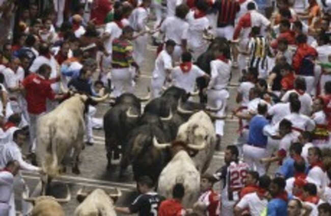 Several people were also trampled under the bulls’ hooves during the crowded 850-metre (930-yard) dash through the city’s narrow streets, which took four minutes and 15 seconds.