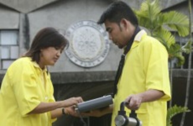 Filipino scientists at the Philippine Nuclear Research Institute monitor the gamma radiation levels in the atmosphere using a SAM portable Gamma Spectrometer AP Photo/Bullit Marquez via PA Images