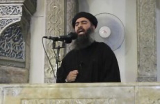 Abu Bakr al-Baghdadi, delivering a sermon at a mosque in Iraq. AP