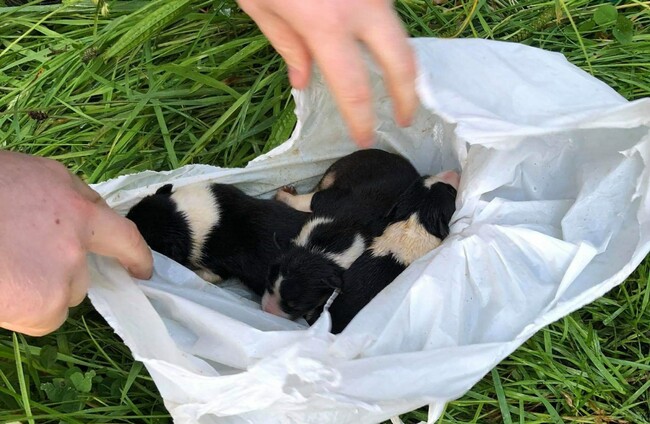 The collie puppies were no more than 10 days old when they were found by a member of the public, and it was uncertain whether they would survive.