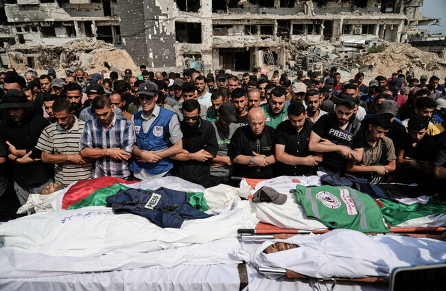 Funeral held in Gaza for six journalists killed in Israeli strike on media tent