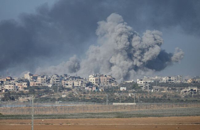 Smoke rises following an Israeli bombardment in the Gaza Strip, as seen from southern Israel. Alamy Stock Photo