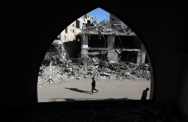The ruins of Khas Younis, in the south of the Gaza Strip, earlier today after over a year of Israeli shelling. Alamy