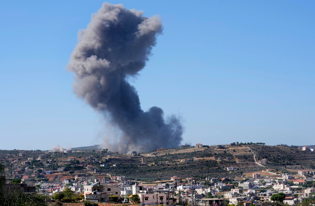 Black smoke rises from an Israeli airstrike on the outskirts of Aita al-Shaab, a Lebanese border village with Israel Alamy Stock Photo
