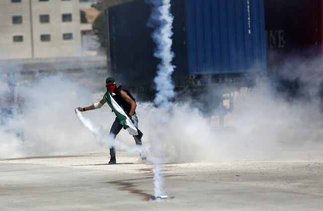 Security forces fired tear gas, sound grenades and rubber bullets at the crowd of Palestinians who threw stones and protested in support of the detainees outside Israel’s Ofer prison north of Jerusalem in the occupied West Bank.