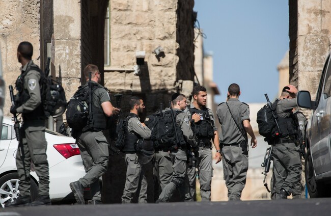 Israeli police guard the Lions Gate of Jerusalem's Old City near the site of the attack. Xinhua News Agency/PA Images