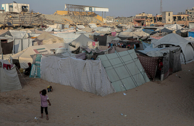 Displaced Palestinians seen at a temporary shelter in the southern Gaza Strip city of Khan Younis. Alamy Stock Photo