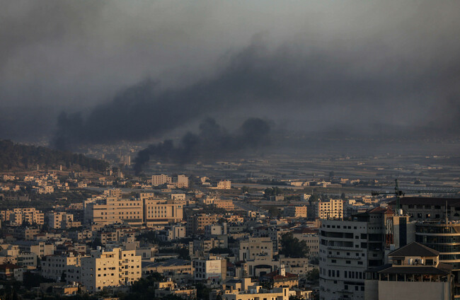 Smoke rises over the city of Jenin in the West Bank during an Israeli military operation Ayman Nobani/dpa/Alamy Live News