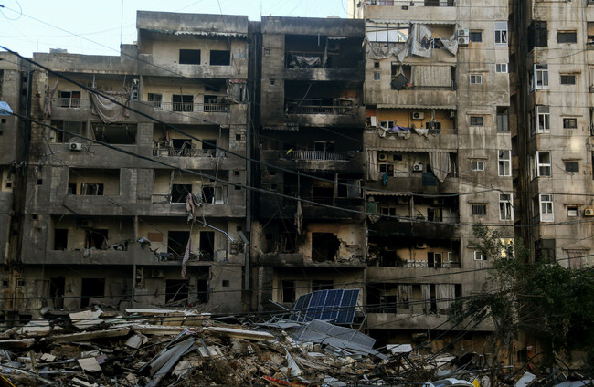 Burned and damaged buildings in southern Beirut Alamy