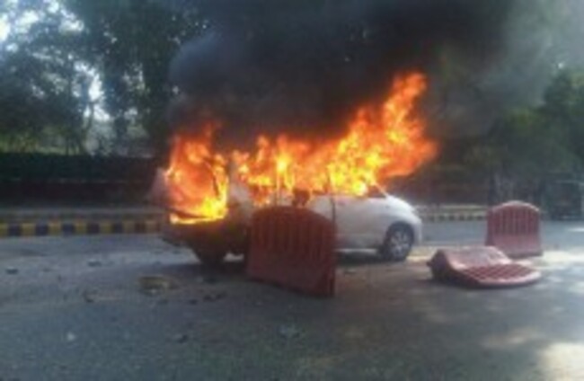 AN EXPLOSION HIT an Israeli diplomat’s car on the streets of New Delhi on Monday, injuring one person.