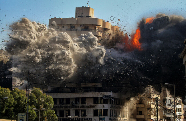 Earlier today, Israeli airstrikes hit south Beirut, crumpling an 11-storey building
