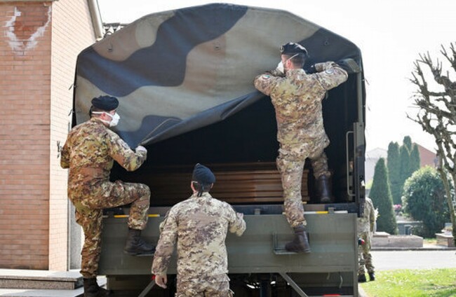 The Italian army transports the bodies of those who have died from Covid-19. SIPA USA/PA Images