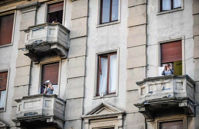 Videos of the phenomenon have gone viral on social media, showing residents from Milan to Sicily sing to each other and playing instruments in unison through windows and across courtyards.