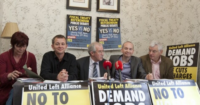 (L to R) Joan Collins, Richard Boyd Barrett, Seamus Healy, Paul Murphy and Joe Higgins at a recent ULA press conference. Sam Boal/Photocall Ireland