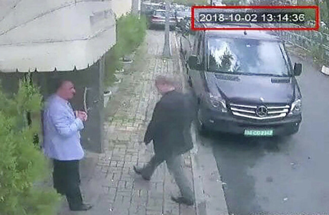 A still image claiming to show Saudi journalist Jamal Khashoggi entering the Saudi consulate in Istanbul on 2 October. AP/PA Images