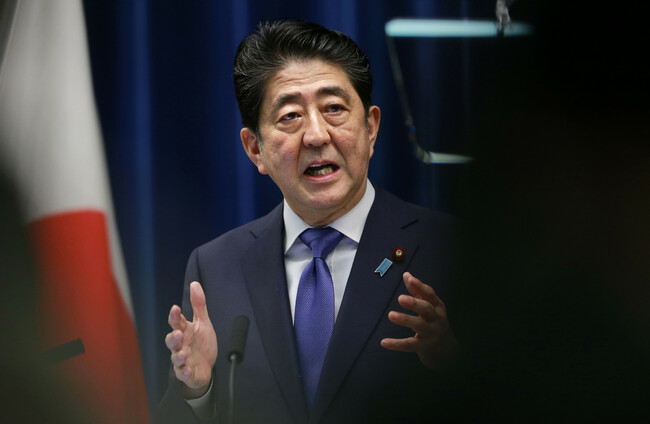 Japan's Prime Minister Shinzo Abe speaks during a press conference at the prime minister's official residence in Tokyo.