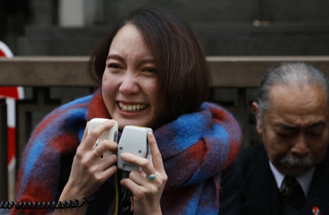 “We won. The counter-suit was turned down,” said Ito outside the court, holding up a banner that read “victory” as supporters cheered and clapped.