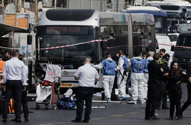 israeli-police-and-rescue-teams-inspect-the-scene-of-a-shooting-attack-where-several-people-killed-and-injured-in-jerusalem-monday-sept-8-2025-ap-photomahmoud-illean A number of bullet were fired at a commuter bus. Alamy Stock Photo Alamy Stock Photo