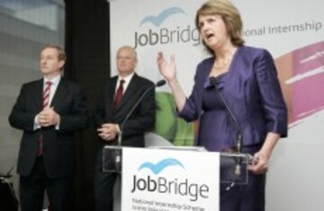 An Taoiseach, Enda Kenny TD, left, Minister for Social Protection, Joan Burton TD, and Martin Murphy, Managing Director of HP Ireland, launched JobBridge, the Government's new National Internship Scheme Mark Stedman/Photocall Ireland