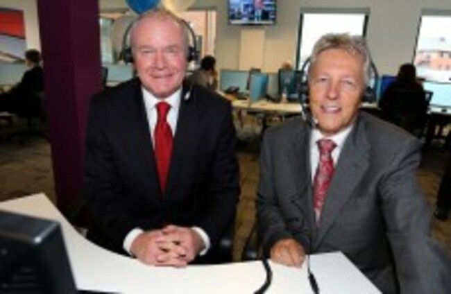 Northern Ireland Deputy First Minister Martin McGuinness and First Minister Peter Robinson visiting Stream Global Services in east Belfast.