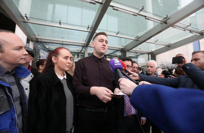 Jason Lester with his mother Sandra talking to the media while leaving the Central Criminal Courts in Dublin. Leah Farrell/Rollingnews.ie