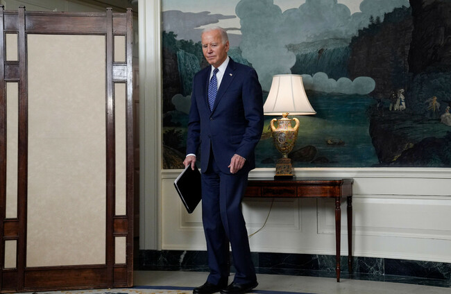 resident Joe Biden pauses after speaking in the Diplomatic Reception Room of the White House, Thursday, 8 Feb. Alamy Stock Photo