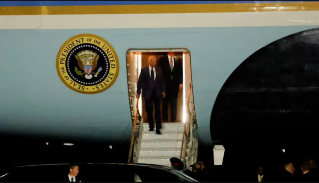 US President Joe Biden has disembarked from Air Force One and has met with UK Prime Minister Rishi Sunak.