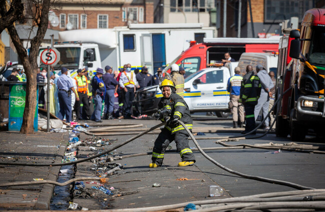 johannesburg-31st-aug-2023-this-photo-taken-on-aug-31-2023-shows-the-fire-site-in-johannesburg-south-africa-the-death-toll-caused-by-a-building-fire-in-the-city-center-of-johannesburg-south-af Emergency services at the scene of the fire. Alamy Stock Photo Alamy Stock Photo