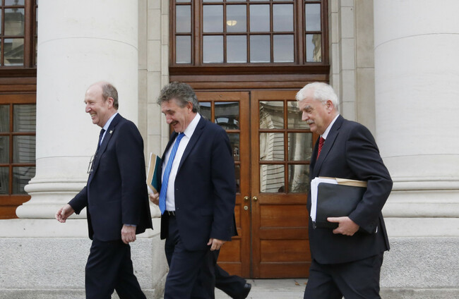 Transport Minister Shane Ross, John Halligan and Finian McGrath on the steps of government buildings. RollingNews.ie