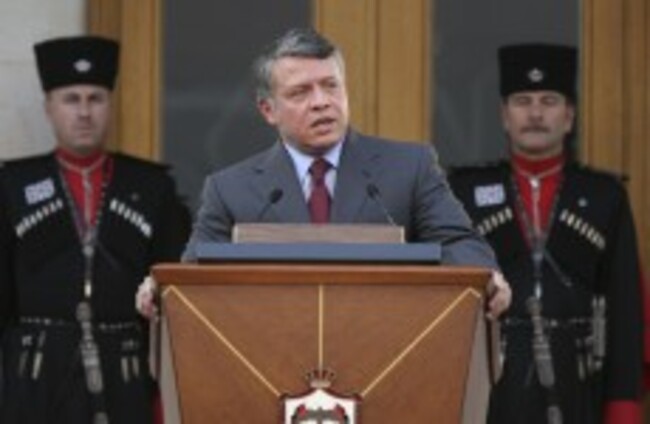 King Abdullah II of Jordan addresses the public after receiving the recommendations of a special committee tasked with updating the constitution. Nader Daoud/AP