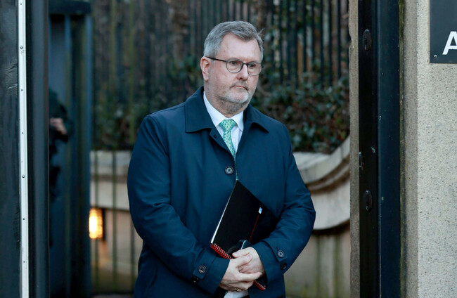 Jeffrey Donaldson leaving Newry Crown Court after a hearing in February 2025 Alamy