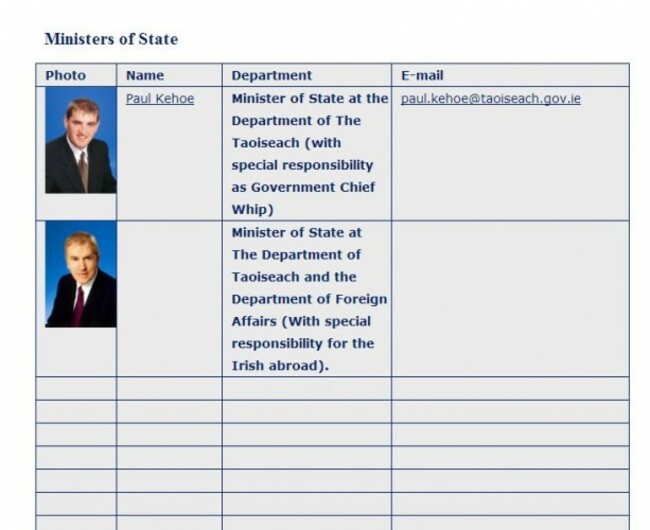 The list of current ministers has already been altered on the Department of the Taoiseach’s website since Friday’s Cabinet reshuffle — with only Government Chief Whip Paul Kehoe and the demoted Jimmy Deenihan currently featured.