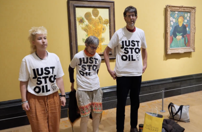 “3 Just Stop Oil supporters have thrown soup over 2 of Van Gogh(‘s) paintings in the ‘Poets and Lovers’ exhibition at the National Gallery”.