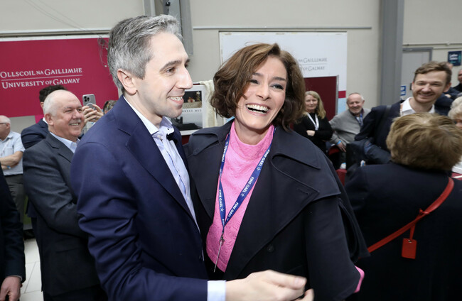 Posing for photos with Simon Harris upon his arrival at University of Galway, several party members at the Fine Gael Ard Fheis told O’Connell it was “good to have her back” and said “I’ll vote for you”.