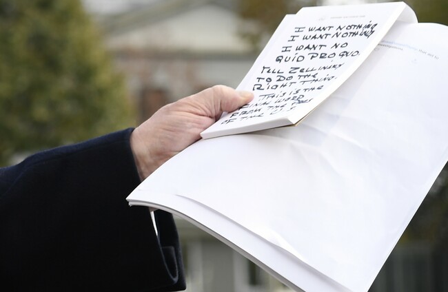 “I want nothing. I want nothing. I want no quid pro quo,” the Trump told Sondland in a September phone call, the same day that members of Congress learned of a whistleblower complaint that would trigger impeachment hearings.
