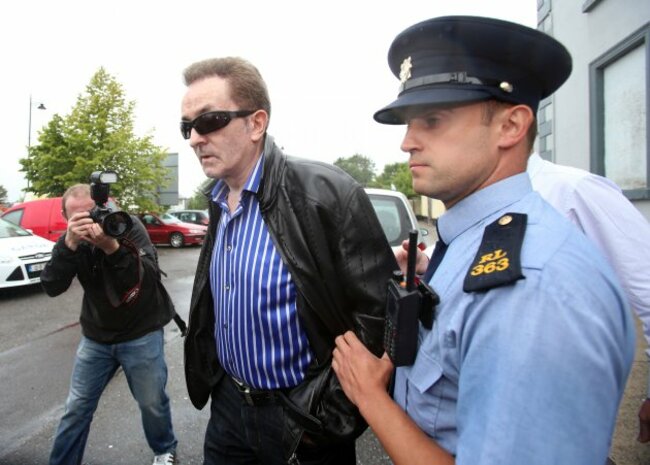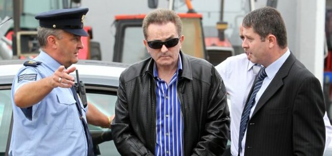 The 68-year-old was brought to Strokestown District Court in Roscommon today wearing dark sun glasses, a striped shirt, a black leather jacket and dark trousers. The vague outline of letters could be seen etched onto McGeever’s forehead; he had said that his abductors had carved the word ‘thief’ onto his head with a penknife during his kidnapping.