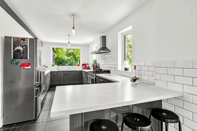 18 The Crescent is an energy efficient B2-rated, four-bed home that has been beautifully refurbished and is ideally positioned on a generous corner site overlooking a mature green in a quiet cul-de-sac. This turnkey 124 m² property blends elegant design with modern upgrades, offering bright, stylish interiors throughout. The ground floor features an impressive open plan kitchen, dining and living space ideal for family life and entertaining, a separate sitting room, utility, guest toilet and a versatile fifth room suitable as a bedroom, office or playroom.