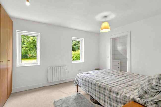 Four generously sized bedrooms are located off the main hallway, including two rooms with en suite bathrooms with dressing rooms, along with a family bathroom and separate shower room. An attached back garage offers excellent potential for renovation. The lands comprise a large paddock near a stream, manicured lawns and also an orchard with apple trees, complemented by two detached stables. Ideally located between Naas and Ballymore Eustace, the property enjoys easy access to surrounding towns and major roads.