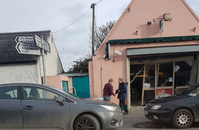 The shop, on the main stretch of road through the town, was rammed at around 3.45am this morning by a dark car. Two men in balaclavas climbed out of the car and entered the premises.