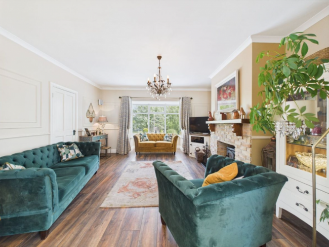 This architect-designed four-bed dormer-style home offers privacy, elegance and thoughtful living spaces on a .56 acre site. Set behind secure gates and accessed via a sweeping driveway lined with mature trees, the 153 m² house enjoys complete seclusion, with 8 foot hedging enclosing the lush gardens. A red brick façade, composite front door and PVC windows add to its appeal. Inside, the spacious layout includes two ground floor bedrooms (one used as a study), a welcoming entrance hall, guest toilet, utility room, a cosy sitting room and a formal dining room with patio access.
