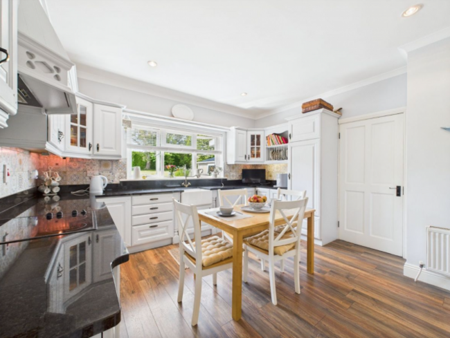 Inside, this 247 m² house has spacious reception rooms, a handcrafted staircase, ornate coving, period fireplaces, a bespoke kitchen with granite worktops and AGA cooker plus four large bedrooms and a stylish bathroom. The grounds feature a sweeping driveway, mature landscaping, a sunlit patio and traditional stone boundaries. Surrounded by excellent local amenities and scenic countryside, this gem offers timeless elegance and practicality.